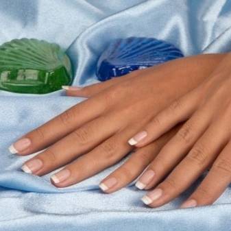 - Представленный вид маникюра помогает выровнять и слегка отбелить ногтевую поверхность.