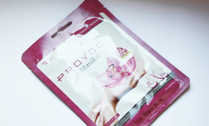 – намного удобнее в использовании. В комплект Provoc входят, перчатки, пилка и апельсиновые палочки. Перчатки очень удобные, пропитаны эмульсией, плотные. В отличие от других наборов, здесь не нужно делать надрез. Достаточно просто потянуть за верхнюю часть перчаток и палец откроется. Производитель рекомендует держать перчатки около 10-15 минут. Стоит немного дороже других наборов.