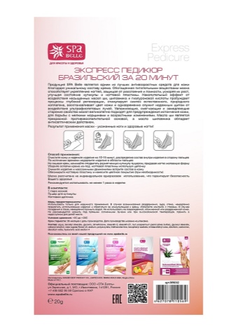 Предстает перед покупателями в небольшой, бумажной упаковке. Выпускается несколько видов наборов, для маникюра и педикюра. Внутри набора «экспресс-маникюр SPA Belle», вы найдете пару одноразовых перчаток, пластиковые пушер для кутикулы и щеточку для ногтей.