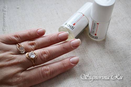 Сделав самый простой обрезной маникюр, стоит распарить руки в травяной ванночке, отодвинув и обрезав кутикулу, придать ногтям желаемую форму и тщательно просушить полотенцем каждый ноготь.