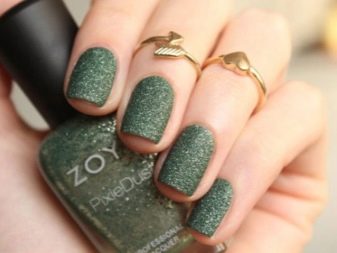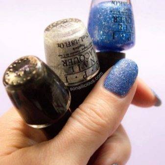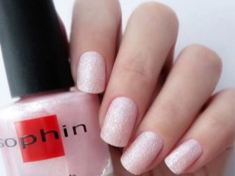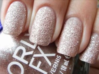 Ярых противниц гелей для ногтей, считающих, что они портят ногтевую структуру, обрадует лак для ногтей, который носит название «песочный». Он идеально подойдет для создания «сахарного маникюра», так как в его составе содержатся мелкие силиконовые частички различного размера. За счет них создается «эффект песка» на поверхности ногтя. Часто в составе присутствуют блестки, делающие маникюр праздничным и сияющим.