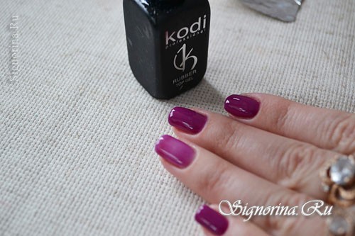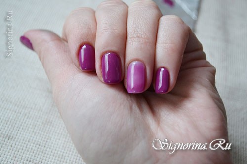 - На ногтевую пластину наносится лак любого оттенка в один слой.