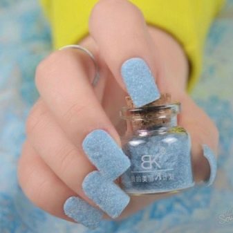 Нужно помнить, что бархатный маникюр не нуждается в дополнительном закреплении прозрачным лаком.