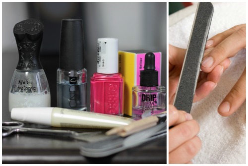 Что касается косметических препаратов, то у вас должен быть специальный набор для сухого маникюра.