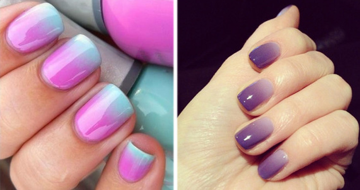 На ногтях, как и в одежде, в макияже или на волосах, тоже возможен плавный переход между контрастными или похожими оттенками