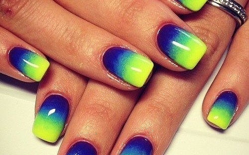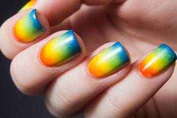 Сам градиент может исполняться в разных направлениях: в горизонтальных, вертикальных, с переходом одного цвета в другой от мизинчика до большого пальчика.