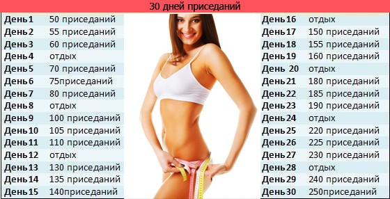 Тренировки с приседаниями проводите через день, что позволит мышцам успеть восстановиться.
