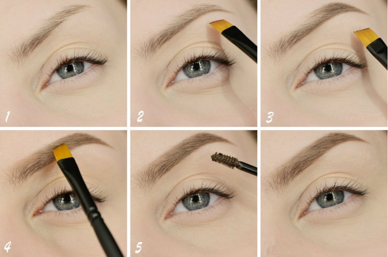 Представляем вам пошаговую инструкцию, как накрасить брови тенями: