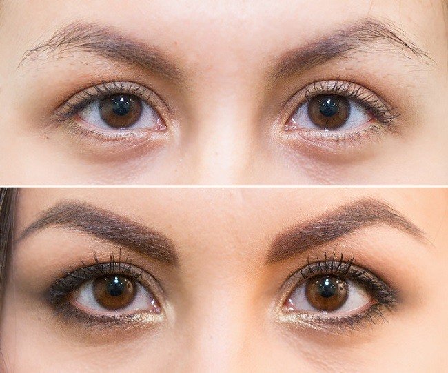 Внимание! Только в том случае, если вам необходимы тени для бровей, а у вас под рукой их нет, можно воспользоваться матовыми тенями для глаз подходящего оттенка. Перламутровые тени, содержат светоотражающие частицы, за счет чего зрительно увеличивают глаза, поэтому для бровей они абсолютно не подходят