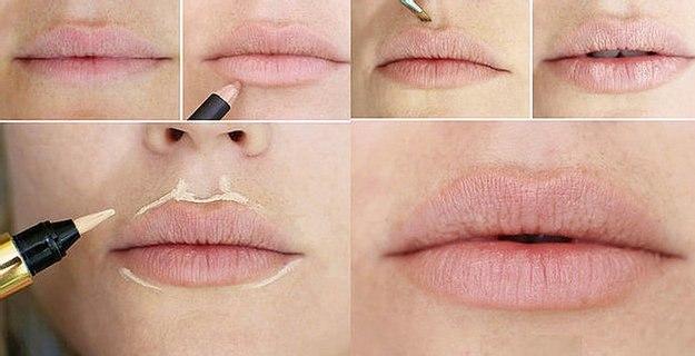 С помощью обычного макияжа можно визуально придать объем и сделать контур, отличный от первоначального. Для этого используют качественные тональные средства для лица, карандаши и помады.
