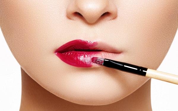 Следующим шагом становится нанесение помады. Жидкие помады наносят специальными кисточками, от центра к уголкам. Твердые типы помад наносят, прокрашивая центр, затем делая штрихи к внутренним контурам.