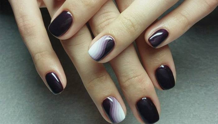 Водный дизайн. Несмотря на странность названия, выполняется такой маникюр достаточно просто. Итак, чтобы получить яркий рисунок, накапайте несколько разноцветных лаков в воду. После, возьмите зубочистку и начинайте выводить узоры. Да-да, прямо в воде! Далее, уже покрытые основным лаком ногти, опускаете в воду. Там получившийся рисунок на ноготки и накладывается. Результат получится несколько хаотичным, но впечатляющим.