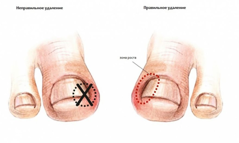 Удаление ногтя назначается только в крайнем случае, если медикаменты и народные средства оказались бессильными. Врач назначает полное или частичное удаление ногтя. Существует три метода устранения ногтя: