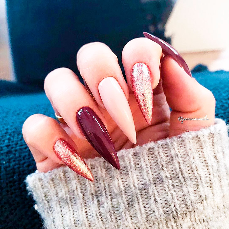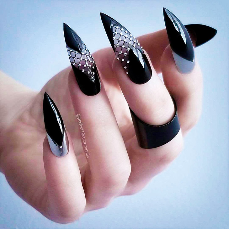 Стилет – это форма удлиненных ногтей, зауженных к концу пластины. Модными в этом сезоне будут глянцевые стилеты, а также выполненные в перламутровых тонах. В тренде граненый маникюр и готический стиль. Стоит помнить, что такой дизайн подходит не всем. Он должен гармонично вписываться в образ целиком.