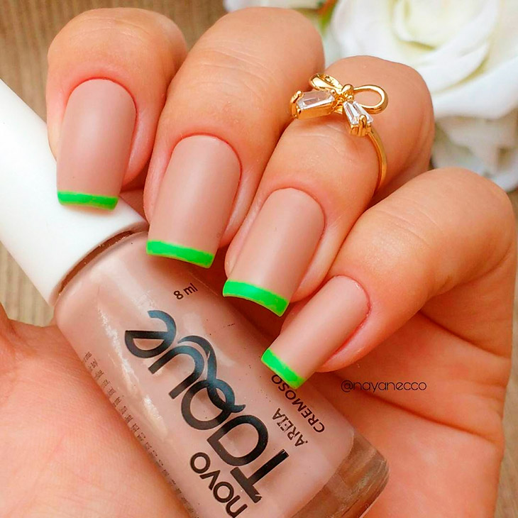 Точно таким же способом можно сделать на ноготке геометрический орнамент или узор, лунка при этом будет тоже нейтрального оттенка, хотя на неё можно нанести лак, подходящий по цвету.