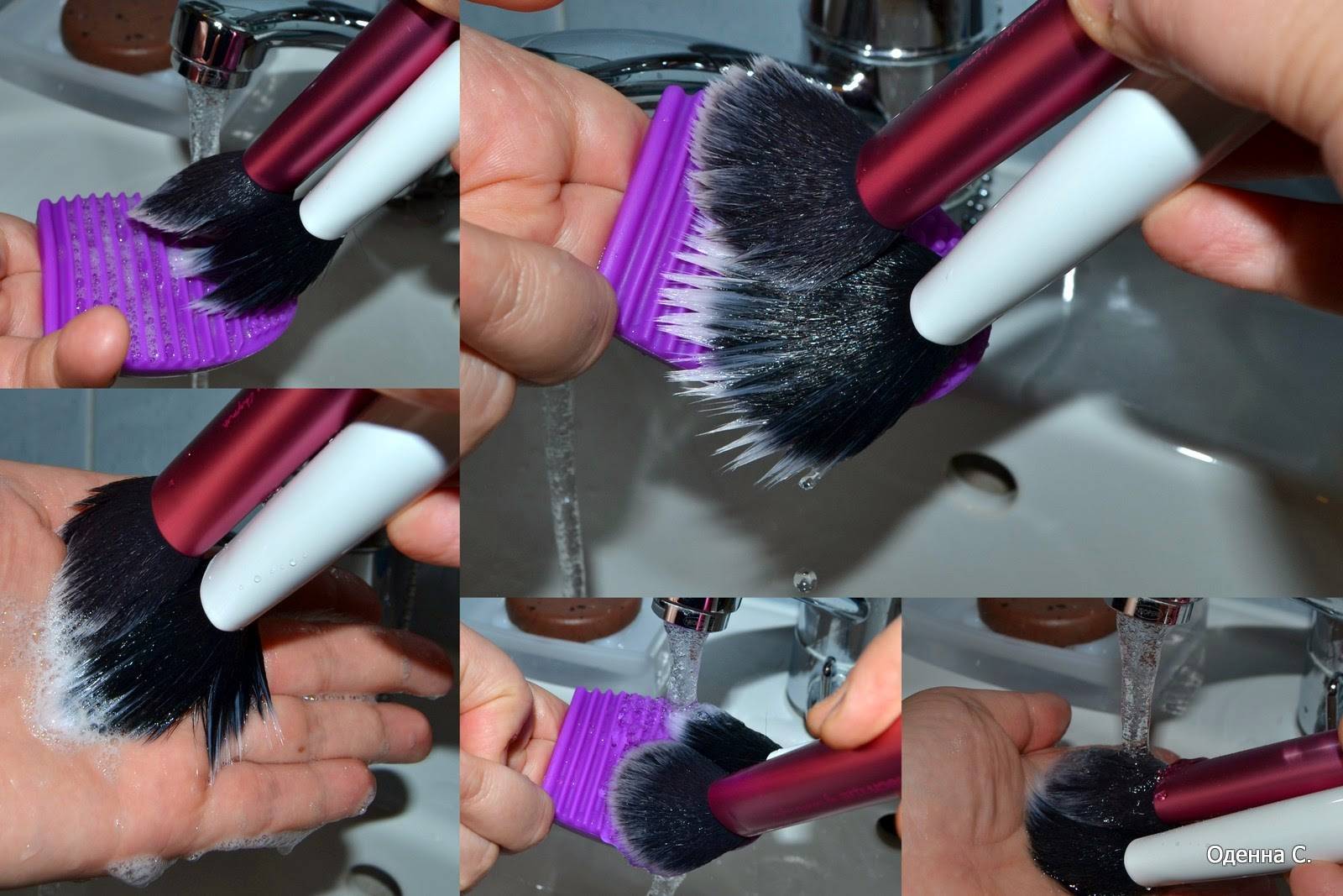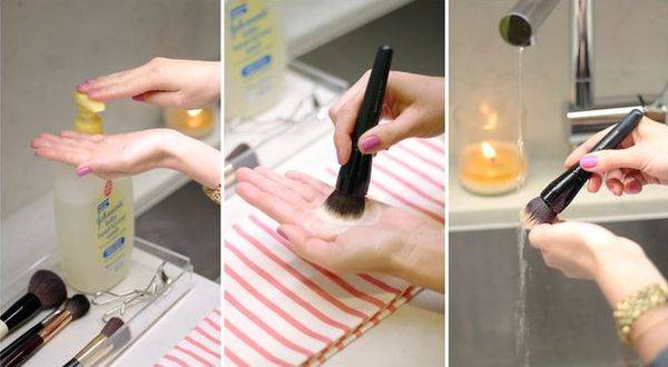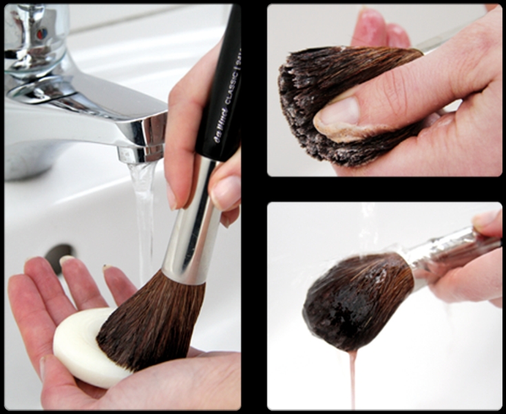 Как видите, кисти для макияжа можно мыть и подручными средствами. Главное следить, чтобы вода не попадала в места крепления щетинок к основе. В противном случае, клей может размокнуть, и ваша кисть в скором времени начнет активно «лысеть».