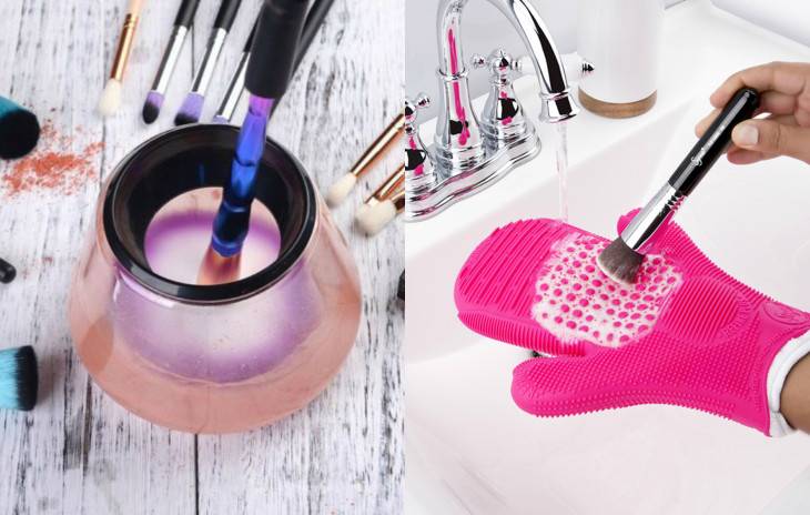 Визажисты чаще пользуются профессиональными очистителями – косметические бренды создают средства, хорошо удаляющие загрязнения. Помимо специальных чистящих средств используют удобные варежки, силиконовый аппликатор. В процессе мытья помните, что не стоит слишком надавливать на рукоять. Дома также лучше использовать дезинфектор, помогающий очистить кисти для макияжа, он продается в свободном доступе в специализированных магазинах.