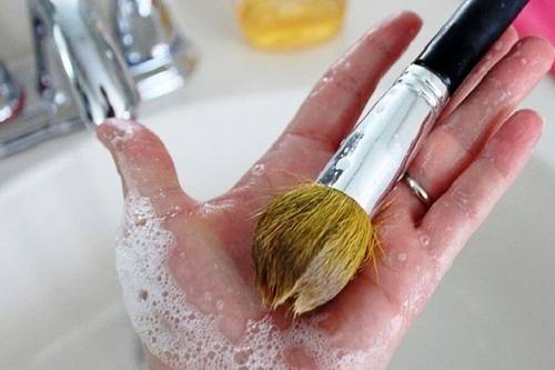 - Промываете кисть под теплой водой, не забыв убедиться, что смыли все масло. В противном случае, при следующей попытке нанести макияж вы можете получить довольно неприятный результат.