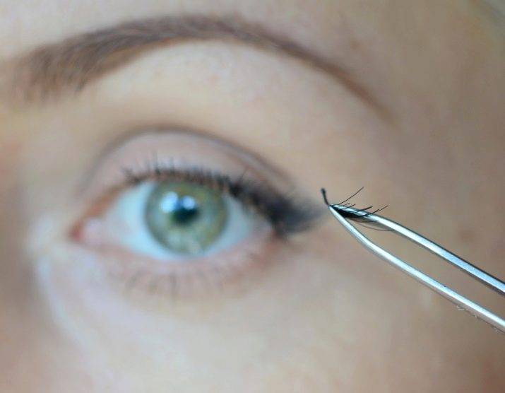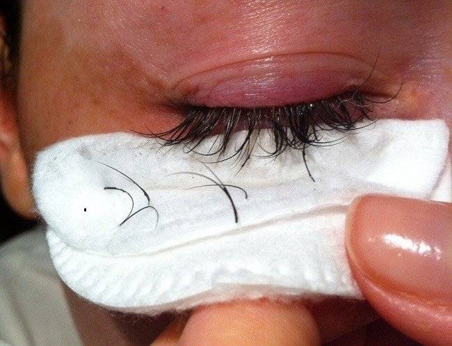- Кожу век смазывают жирным кремом. Жир быстро растворяет клей, и волосы легко снимаются.