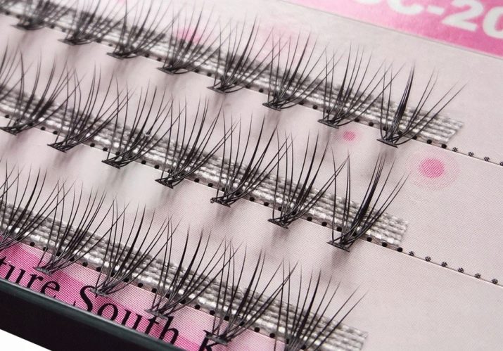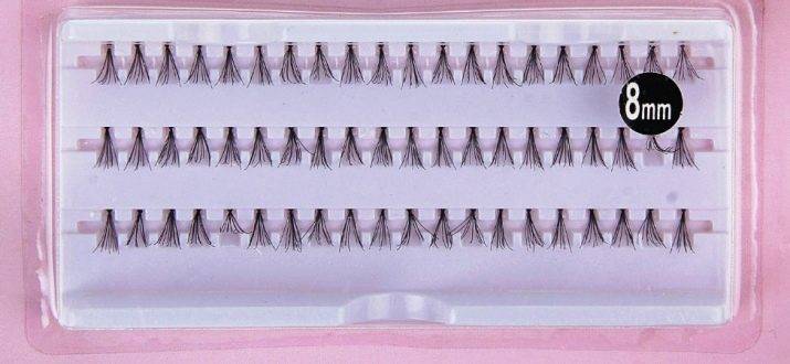 Данный вид материала изготавливается из искусственных волокон, которые склеены между собой в небольшие пучки. Для создания выразительного взгляда производители размещают в одной упаковке ресницы разной длины. Короткие реснички предназначены для размещения возле внутренней части века, а вот длинные – ближе к внешней.