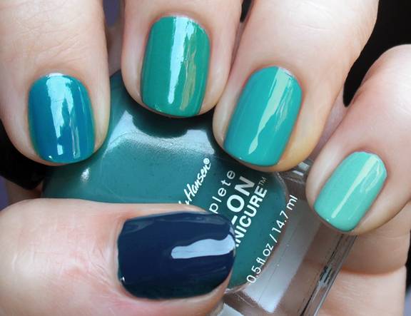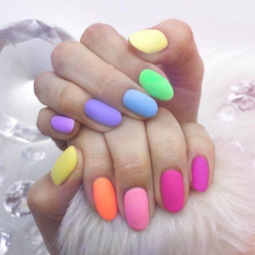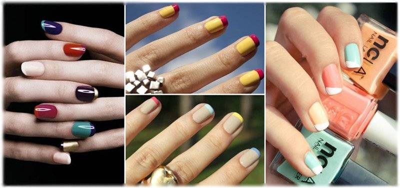 - популярен и маникюр, при котором ногти на разных пальцах окрашиваются в отличающиеся цвета.