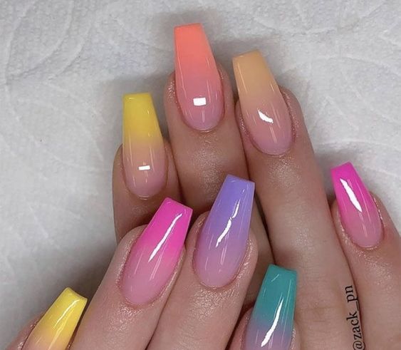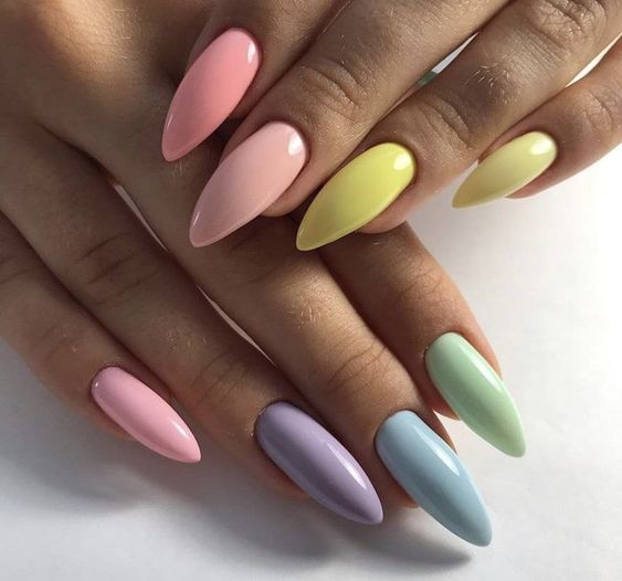 Красить ногти разными цветами — вообще смелый эксперимент, который может быть выполнен разными способами. Рассмотрим наиболее распространенные из них: