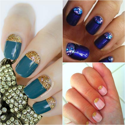 маникюра лучше выбирать темные оттенки в сочетании с металликом. Традиционные для «френча»
