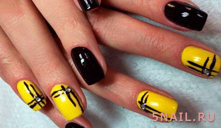 Черный цвет становится благороднее в сочетании с золотистым тоном. Ваша фантазия — самый первый помощник при выборе будущего дизайна. Может быть, им станет изысканный градиентный маникюр или изящное сплетение цветов в витиеватых узорах. Богато и интересно выглядит дизайн, в котором каждый ноготок можно разделить условной полосой на два тона. Если вы относите себя к страстным натурам, жаждущим непременной изысканности, то попробуйте двухцветный союз черного и красного оттенков. Для вашего вдохновения ниже представлены несколько фотографий с чудесным дизайном.