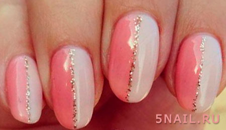 - Выделение другим цветом ногтей на среднем и безымянном пальцах или плавный переход на одном из ногтей каждой руки;
