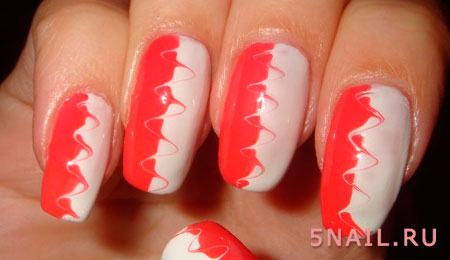 Если в качестве базы вы используете белый цвет (в 2014 году он был на пике популярности), то постарайтесь украсить ногти, соединив его с красным или темно-синим тоном. Может быть, это получится классический френч с красными полосами и узорами. Довольно нежно смотрится маникюр в красном тоне с белым горошком — ваши ручки точно не останутся без внимания. Вы можете создать двухцветный фарфоровый маникюр, воспользовавшись синими оттенками. Выглядит шикарно. Если вам по душе более строгий стиль, тогда стоит окрасить ногти сочетанием белого и черного тонов. Хотите окунуться в винтажную эпоху? Тогда попробуйте изобразить на ноготках гжель — вам точно придется по нраву полученный результат! Различные варианты окрашивания вы увидите на представленных фотографиях.