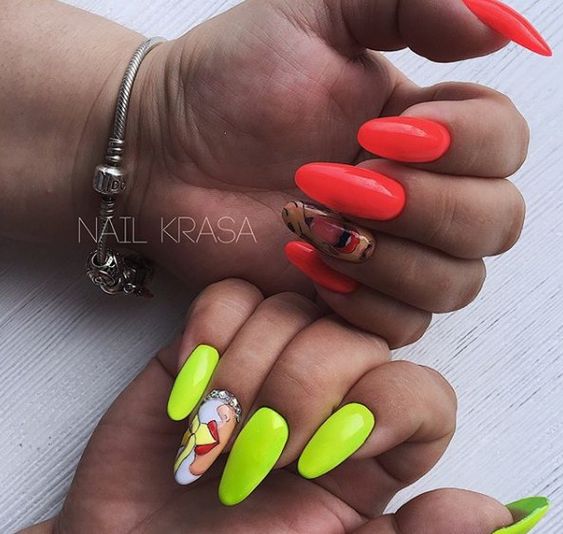 Арт долгое время остается модным. Можно делать образ очень броским с помощью разноцветных рисунков на ногтях. При этом здесь бесконечное количество вариантов и сочетаний, неисчерпаемое число идей для дизайна.