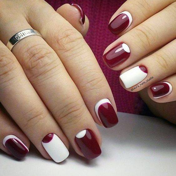 Накрасить ногти двумя цветами можно по-разному, интересно комбинируя различные цвета и оттенки. Цветовое решение должно сочетаться с Вашим настроением, одеждой и макияжем.