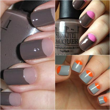 - французский маникюр, при котором сам ноготь окрашивается в яркий цвет, а для лунки выбирается довольно кричащий оттенок;