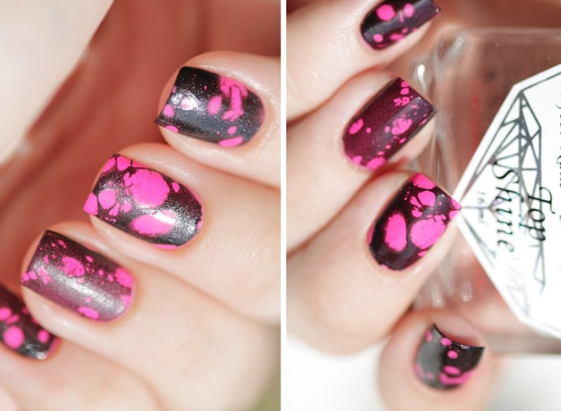 Этот дизайн особенно ценят молодые девушки, которые тяготеют к дерзости в имидже. В нем есть нечто смелое, в то же время не без романтизма. Необходимо подобрать самый яркий розовый лак, а в контраст к нему — глубокий черный.