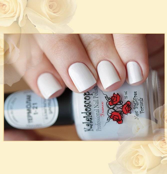Окрашиваем ногти термолаком. По отзывам Натальи лак сильнопигментированный и легко наносится. В теплом состоянии лак белый и поэтому будет хорошо сочетаться с любыми другими лаками.