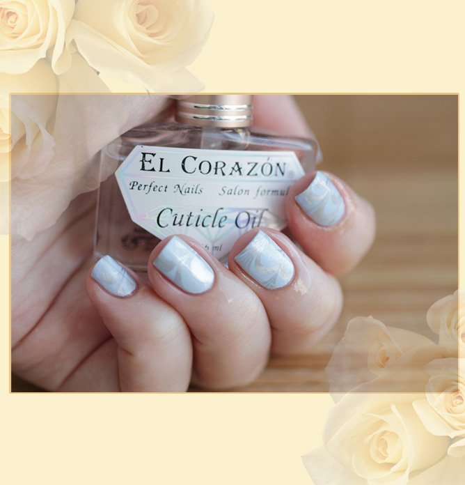 Примечание. Данный водный маникюр был сделан несколько лет назад, учтите это. В настоящее время применяйте EL Corazon Kaleidoscope Cuticle Defender – защиту кутикулы от лака. Это значительно упрощает процедуру выполнения водного маникюра.