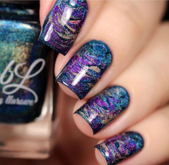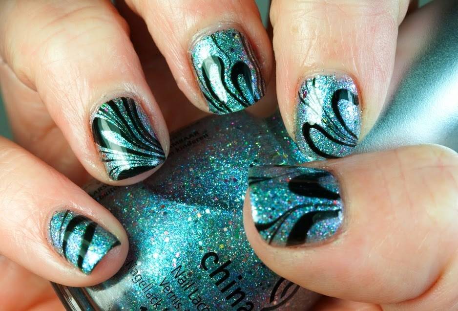Стоит обратить ваше внимание на то, какие цвета и сочетания лаков более гармоничны для водного дизайна. При необходимости создания более яркого и неповторимого водного рисунка, можно использовать голографические лаки