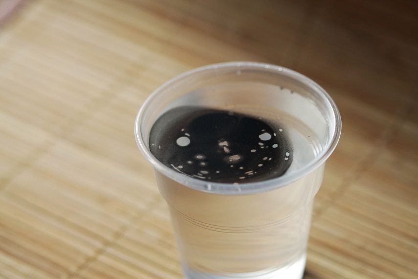 Капаем немного черного лака в стакан. Учитывайте, что чем больше будет капель, тем темнее будет рисунок.
