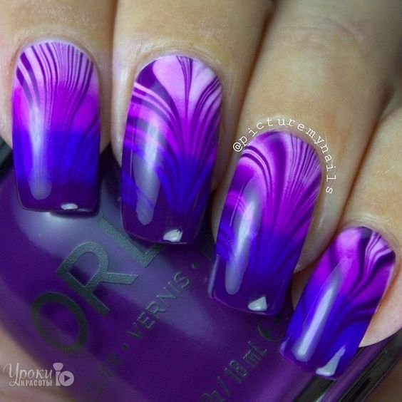 Сочетание розового и фиолетового цветов в водном маникюре делают его одновременно красивым и универсальным.