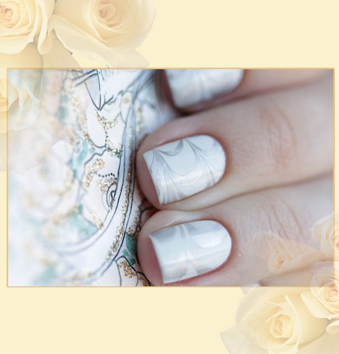 Такой вариант маникюра на водной основе выглядит эффектно и интересно. А очаровательный дизайн ногтей поможет создать очаровательный образ, который не останется незамеченным.