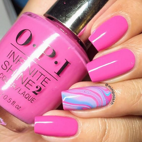 Так как водный маникюр достаточно сложен для нанесения и требует особой аккуратности, рекомендуется начать с простого — сделайте акцентный маникюр, то есть окрасьте узорами один или два ногтя на каждой руке.