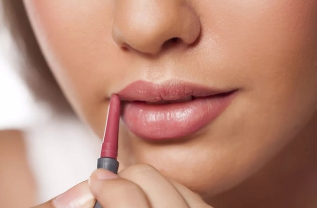 - Обведите только что нарисованный контур карандашом для губ, подходящим по тону вашей помаде.