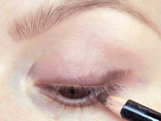 - Изначально сделайте контур глаз. Для дневного мейка подойдет карандаш для глаз. Прорисуйте линию от внутреннего уголка глаз к внешнему и растушуйте кистью. Если вы хотите сделать вечерний макияж, воспользуйтесь подводкой. Красить ею глаза непросто, если нет навыков, но вы можете потренироваться делать себе дома красивые стрелки.
