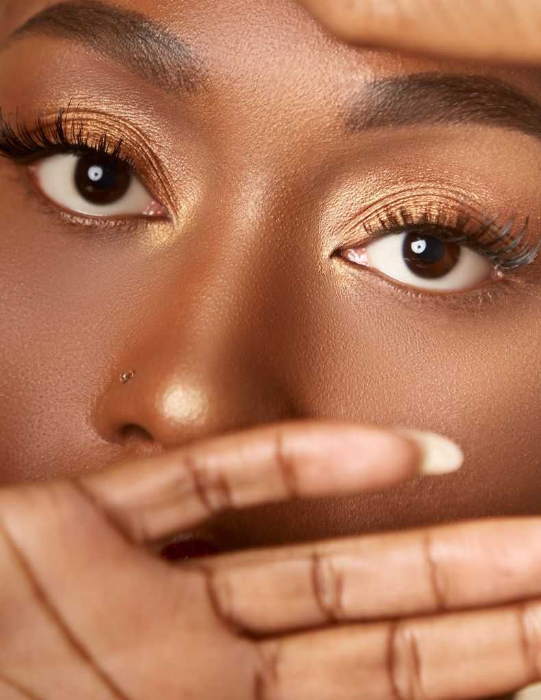 Если позволяет время, после нанесения сияющих теней можно доработать макияж с помощью туши и лайнера. Накрашенные ресницы придадут образу завершенности, а аккуратные стрелки сделают взгляд более выразительным и подчеркнут сияние на веках.