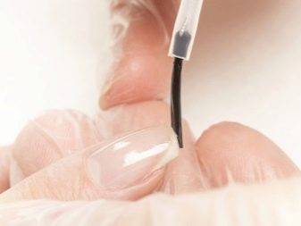 После нанесения раствора на поверхность, девушке дополнительного покрытия не требуется. После закрепления состава под ультрафиолетовой лампой, можно наносить декоративное покрытие.