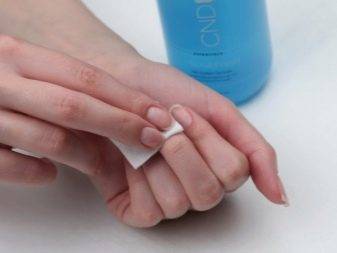 В завершении этого этапа ногти обрабатывают обезжиривателем.