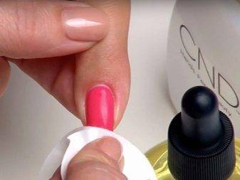Когда ноготки немного остынут после сушки, можно снимать липкое покрытие с помощью безацетонной жидкости или обычного спиртового раствора.