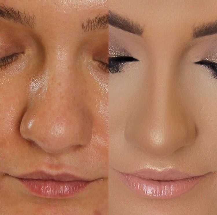Чтобы «нос картошкой» стал более утонченным, высветли спинку носа хайлайтером, а по бокам и на крыльях пройдись темным скульптором.