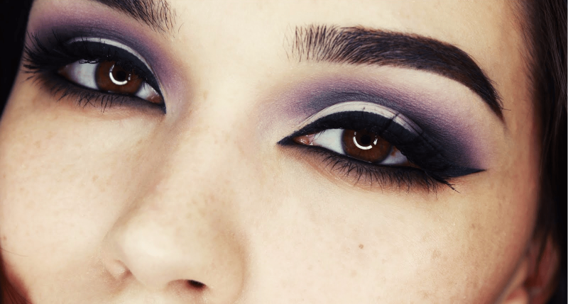 Рассмотрим вариант макияжа фиолетового оттенка: