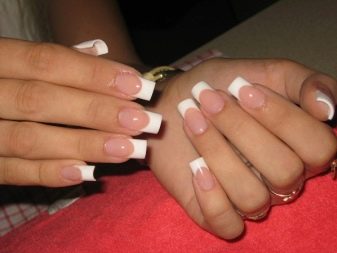 - Если для акрилового наращивания берутся дешевые материалы, то ногти потом имеют неприятный запах.